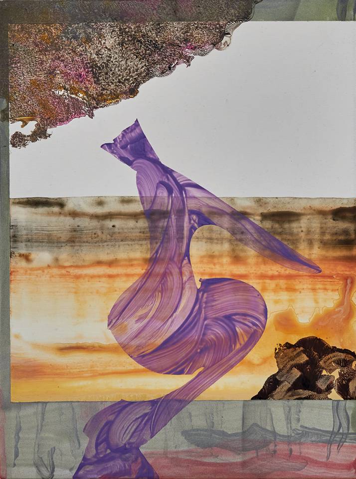 Den nächsten Raum beleuchten großformatige Sonnenuntergänge, die Fotos geschossen aus dem Flugzeug. Dramatisch oder zartes Rosa zwischen dunkler Erde und azurblauem Himmel, Bedrohung oder Aufbruch? Leinwände und Zeichnungen behaupten sich in ihrer physischen Präsenz vor den Digitaldrucken. Und dann ist da noch ein kleines Foto, sehr bekannt, denn es zeigt die Erde, geschossen auf einer der NASA-Missionen auf dem Weg zum Mond. Die inhaltlichen Konnotationen sind bekannt, aber entscheidend ist, dass es vom Mond aus gesehen keinen Horizont auf der Erde gibt. Der Standpunkt zählt. Ein kleines Kabinett bietet zuletzt einen Monitor. Er präsentiert einen Videoloop, in dem eine Form einen absurden Reigen auf einer bühnenartigen Fläche aufführt. Es ist, als ob die Bilder zu tanzen beginnen.
