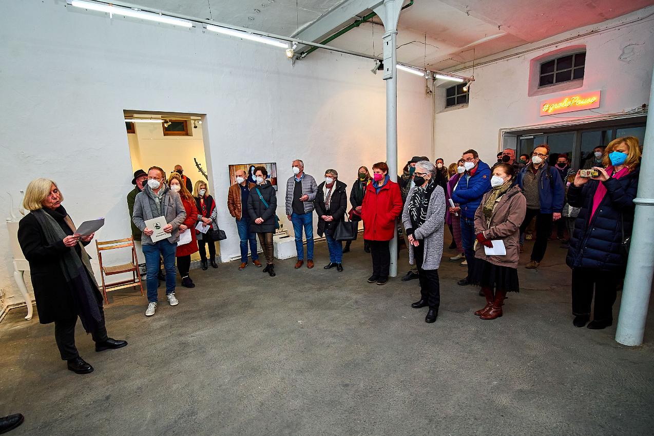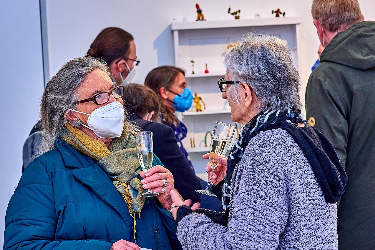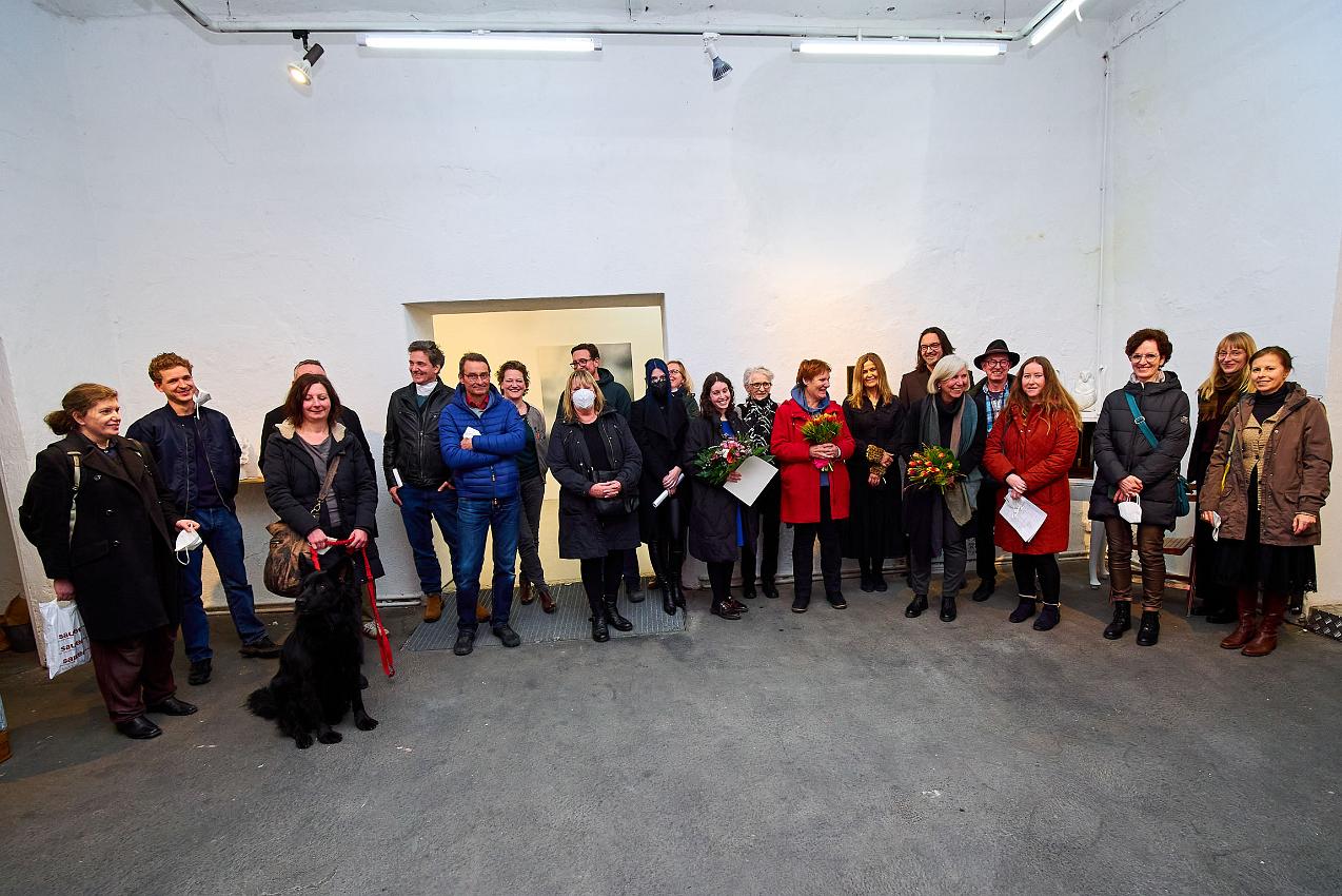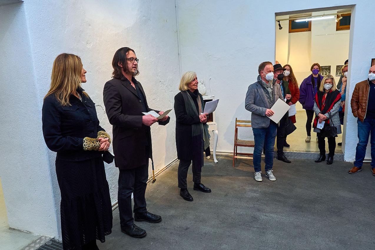 Die Vernissage am 25.02 2022 war nach so langer Abstinenz von Kunstausstellungen nicht nur gut besucht, sondern fühlte sich an wie ein Befreiungsschlag. Zahlreiche Künstlerinnen und Künstler waren teilweise weit angereist, um endlich einmal wieder mit dem Publikum im persönlichen Kontakt ins Gespräch zu kommen. Auch die Begegnung und der Austausch der Künstler:innen untereinander war für alle eine willkommene Gelegenheit nach der langen Isolation.