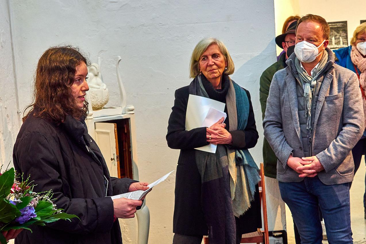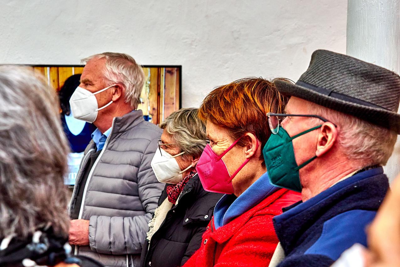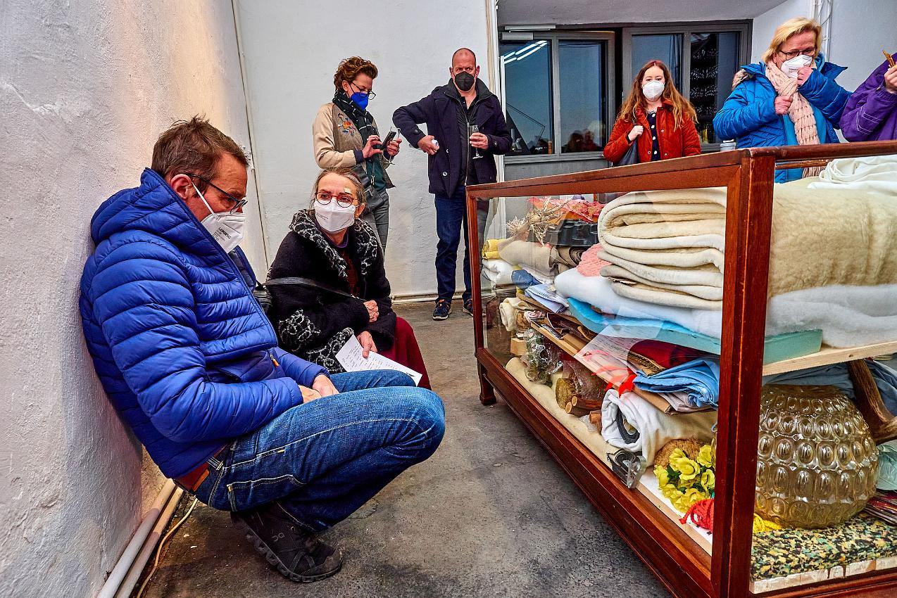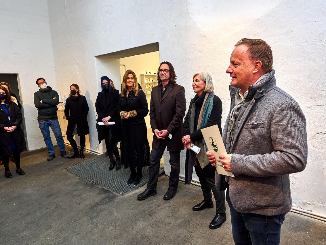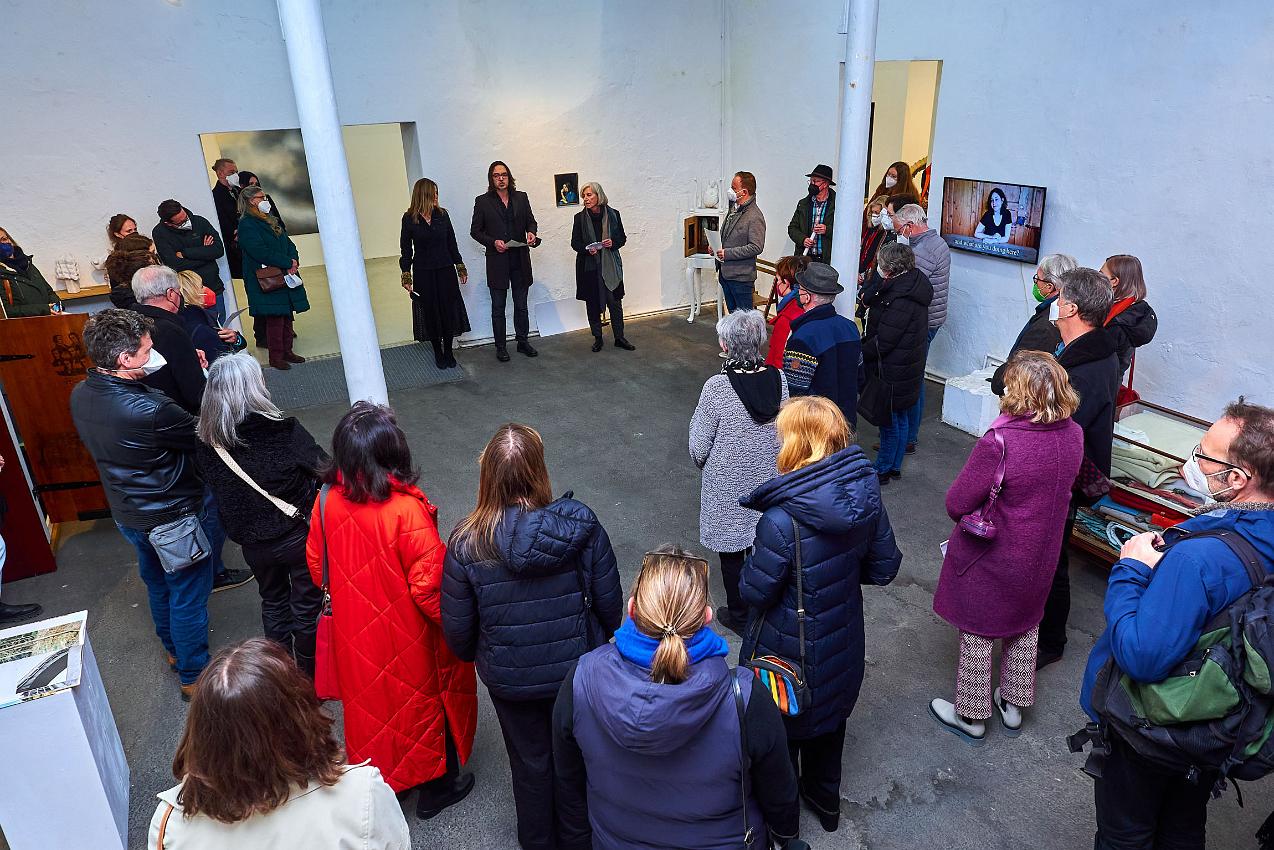 Die Vernissage am 25.02 2022 war nach so langer Abstinenz von Kunstausstellungen nicht nur gut besucht, sondern fühlte sich an wie ein Befreiungsschlag. Zahlreiche Künstlerinnen und Künstler waren teilweise weit angereist, um endlich einmal wieder mit dem Publikum im persönlichen Kontakt ins Gespräch zu kommen. Auch die Begegnung und der Austausch der Künstler:innen untereinander war für alle eine willkommene Gelegenheit nach der langen Isolation.