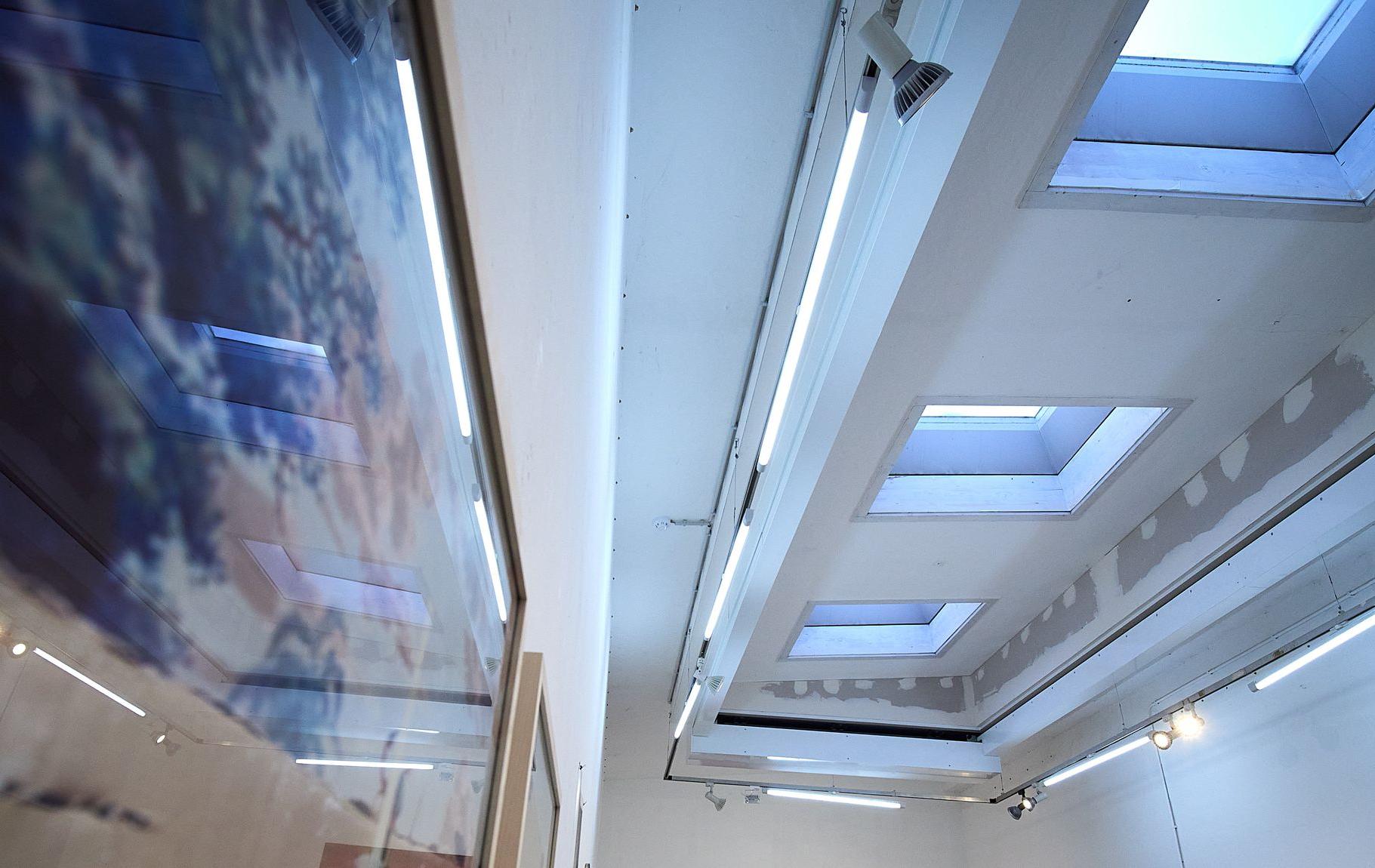 Kunstverein Ebersberg, Galerie Alte Brennerei. Jahresausstellung 2024 "Grenzverschiebungen", 19. Januar - 11. Februar 2024. hier: Raumansichten Oberlichtraum.