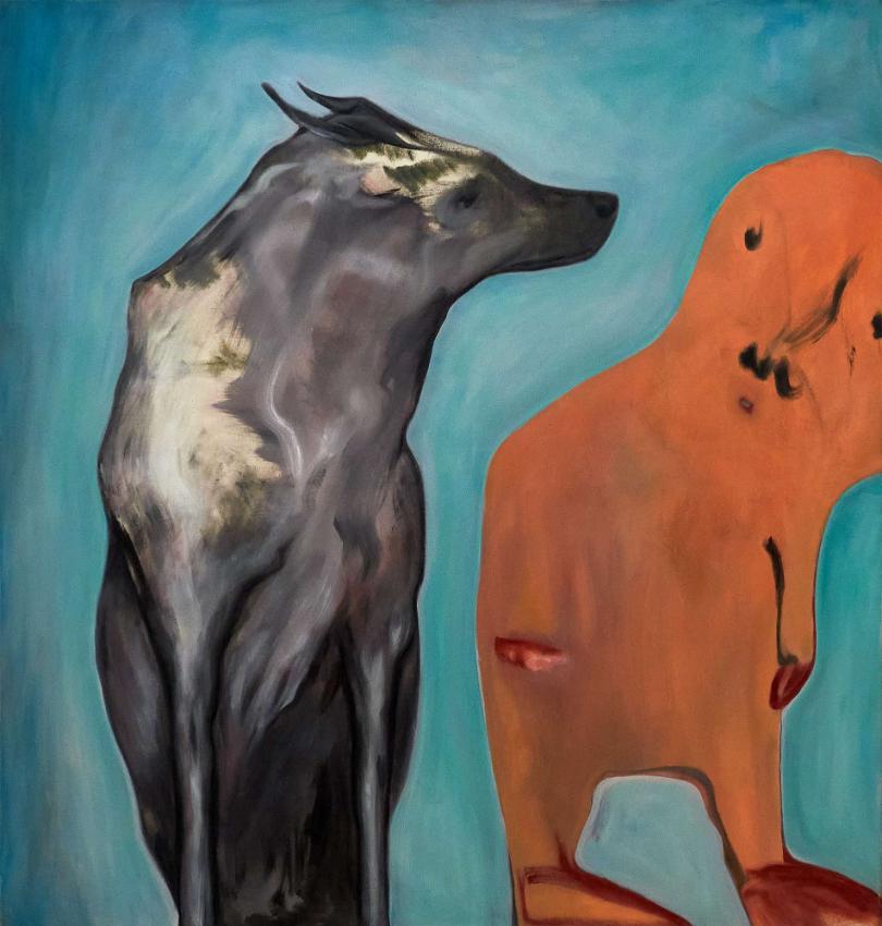 Eden Nael Liedtke, "Letzte Dusche in der Bürgerstraße 10", 2022-2023, (Ölfarbe und Buntstift auf Leinwand - 100cm x 75 cm)