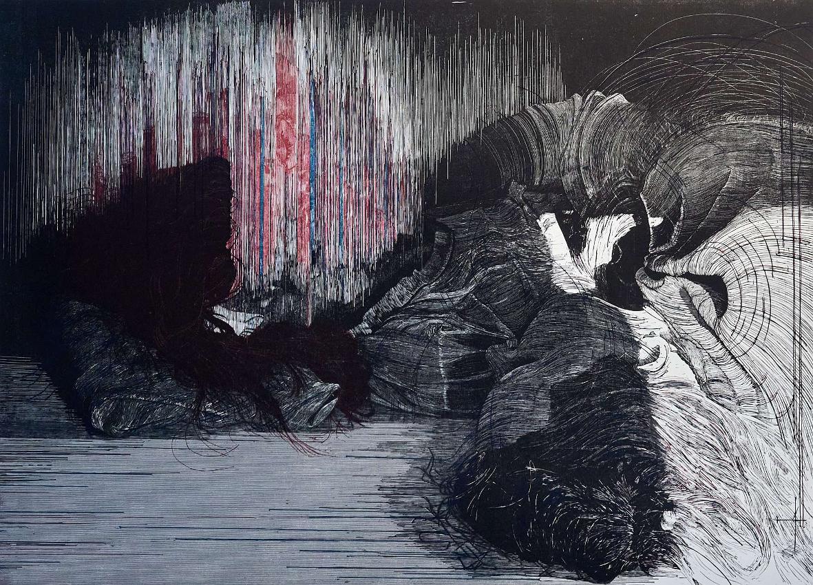 Maximilian Helk, "Café Grenzwald 3000 Notausgang", 2020, (Grafit und Aquarell auf feinstes Künstlergewebe - 290cm x 180cm)