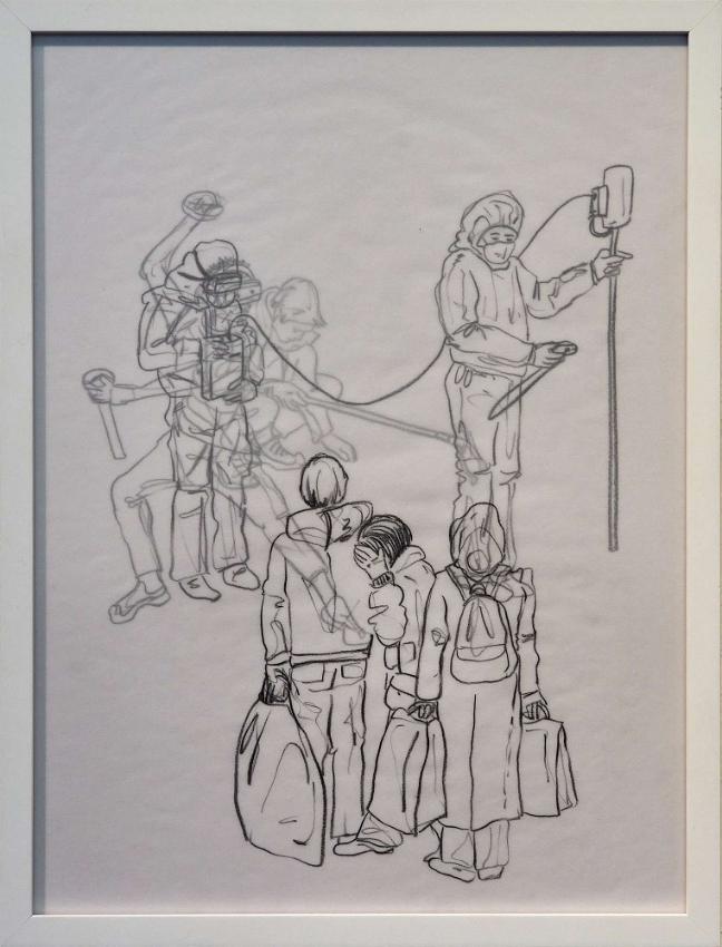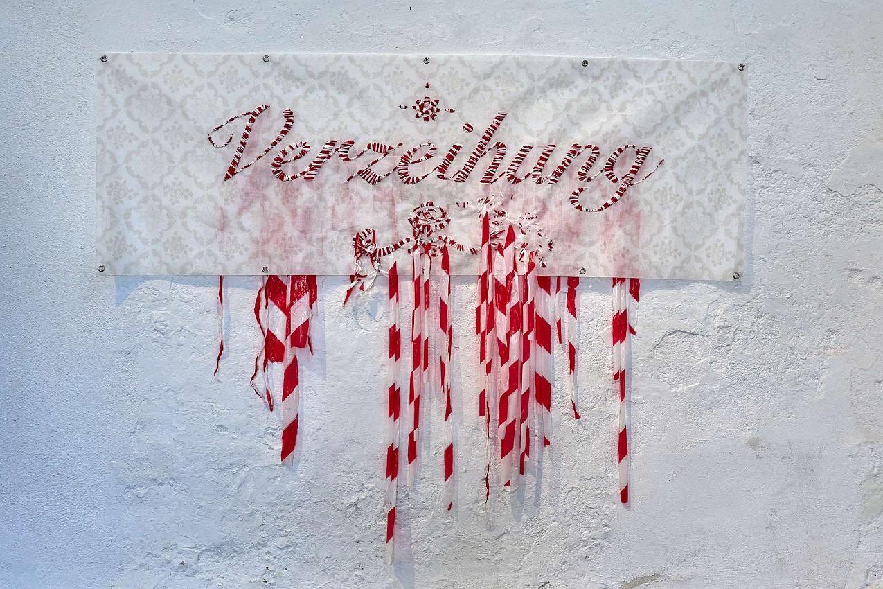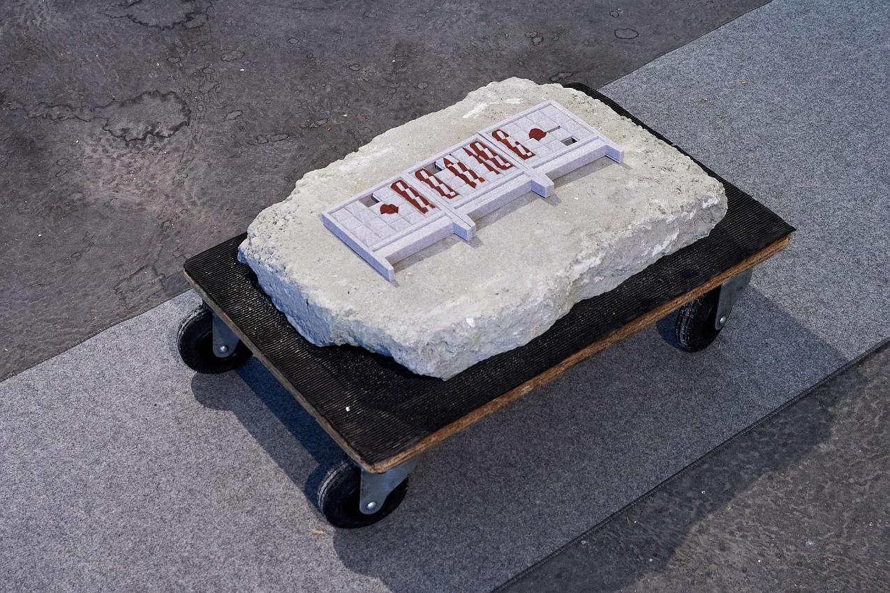 Peter Kees, "Achtung Staatsgrenze", 2023, (Installation - Grenzschild: 51x67x2cm / 3 Kanister a 45x45x20cm)