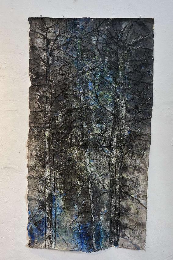 Kunstverein Ebersberg, Galerie Alte Brennerei. Jahresausstellung 2024 "Grenzverschiebungen", 19. Januar - 11. Februar 2024. hier: Raumansichten Säulenhalle.
