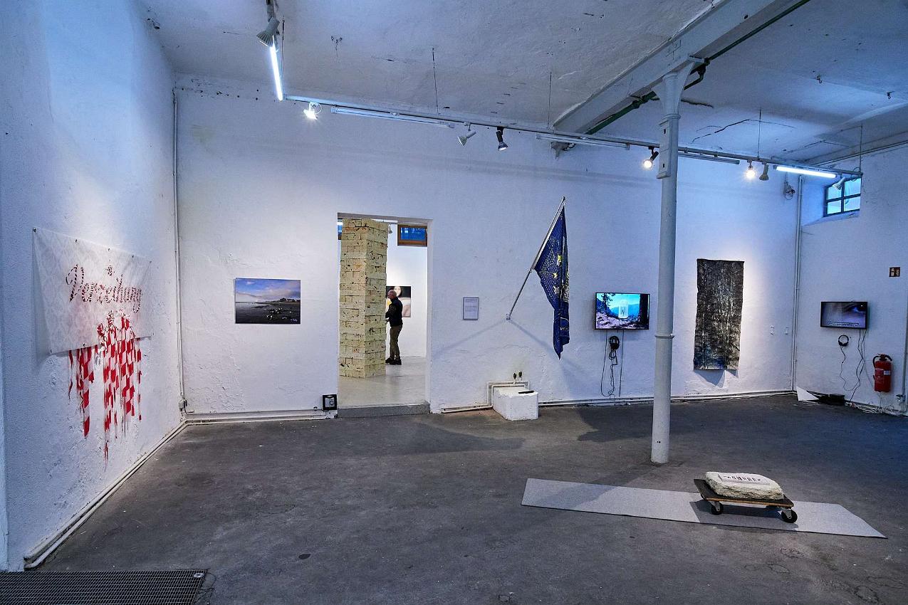 KVE Alte Brennerei. Jahresausstellung 2024 "Grenzverschiebungen", 19. Januar - 11. Februar 2024. hier: Raumansichten Säulenhalle.