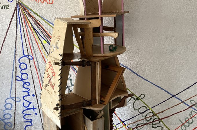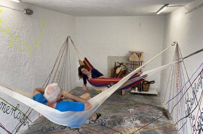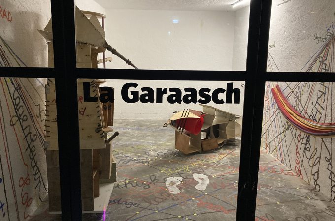 Zu Beginn des La Garaasch-Projekts wird Johannes Gottwald so etwas wie eine Fahne hissen auf der er dieses „Dazwischenstehen“ thematisiert hat.
